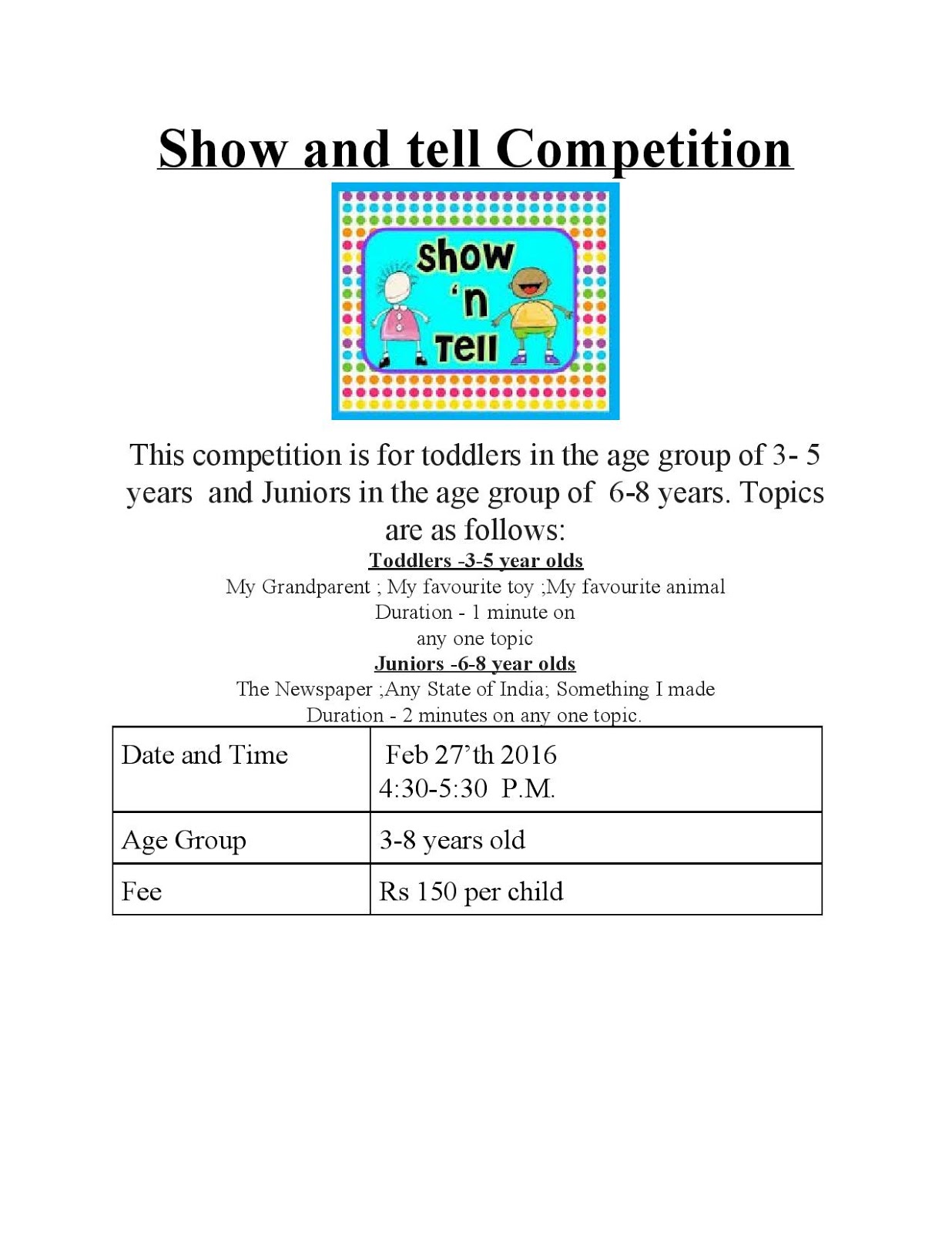 1. Toddler Science on 9'th Feb from 4:30-5:30 P.M for 2-6 year olds